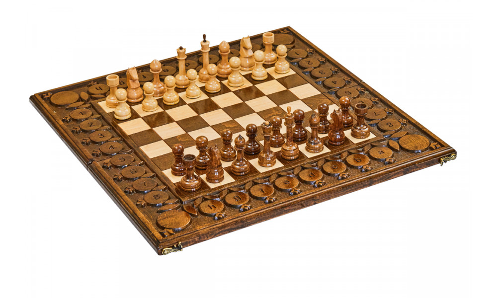 Шахматы + нарды резные с гранатами 30, Haleyan
